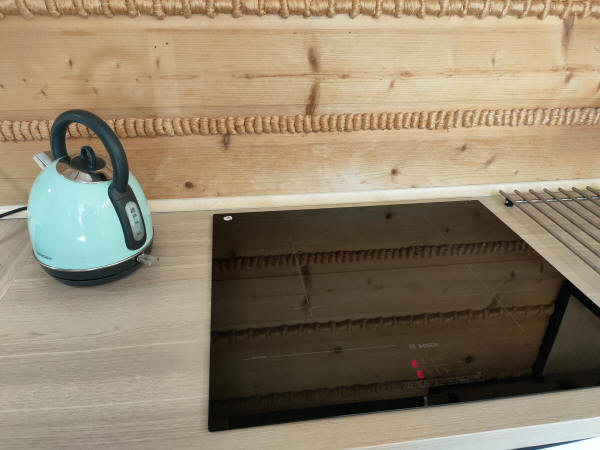 mesa + 4 sillas, frigorífico-congelador, cocina de inducción de 4 fuegos